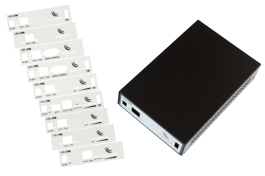 MikroTik CA411-711, RB411, RB911, RB912, and RB922 series RouterBOARD devices are designed with a black aluminum case model suitable for indoor use. This chassis ensures the secure mounting of devices and allows for the compatible placement of miniPCI cards.