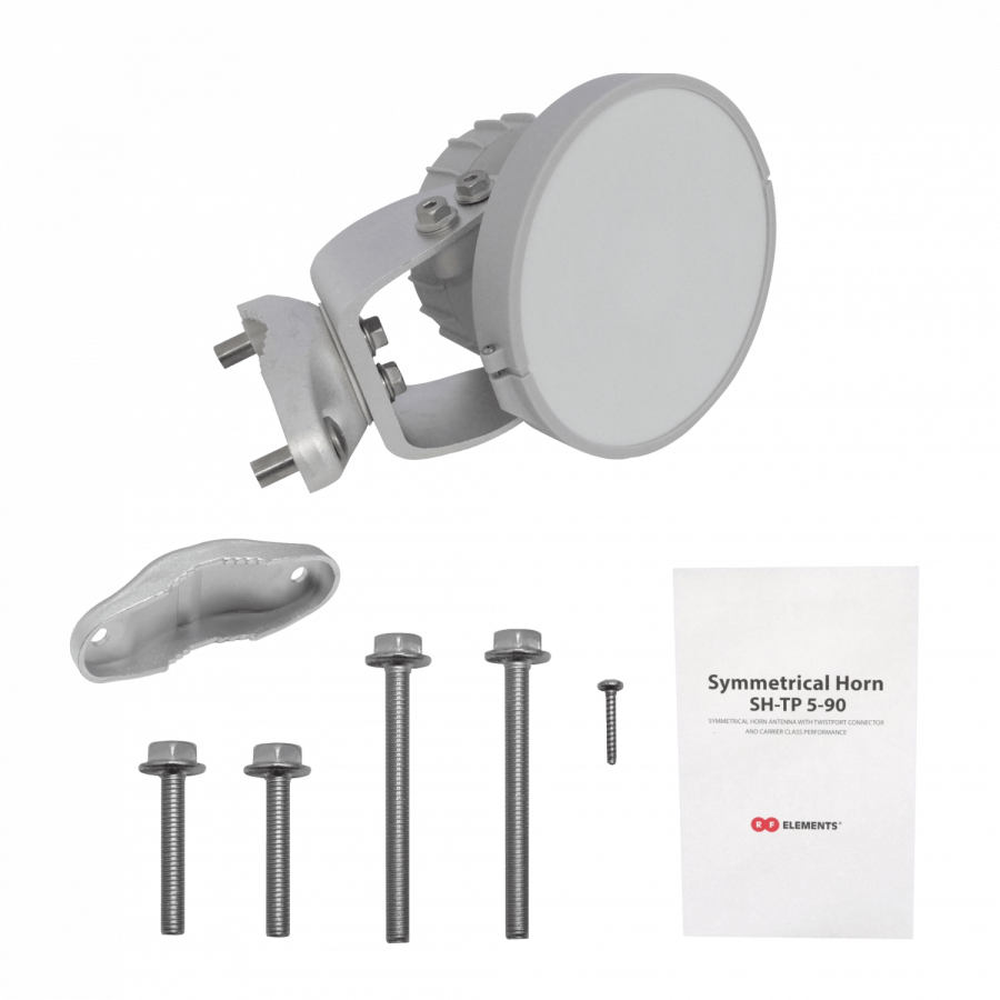 SH-TP-5-90a product manufactured by RF ElementsSymmetrical Horn AntennaIt is a model and offers superior performance particularly in environments where high-density access point clusters and radio devices are used together. This antenna operates in the 5 GHz band andTwistPort™It provides the opportunity for low-loss, fast, and easy connection thanks to its connector.