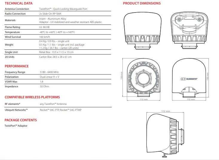 TwistPort™ Adapter V2This model, a member of the series, is used to quickly and securely integrate Ubiquiti Rocket 5AC-PTP/PTMP devices with TwistPort-compatible antennas.