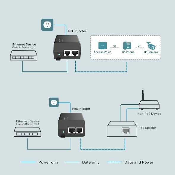 TL-POE160SIt is a PoE+ (Power over Ethernet) injector compliant with IEEE 802.3af/at standards. This device provides both data and power over a single Ethernet cable, offering a practical and economical solution for the installation of PoE-supported devices.