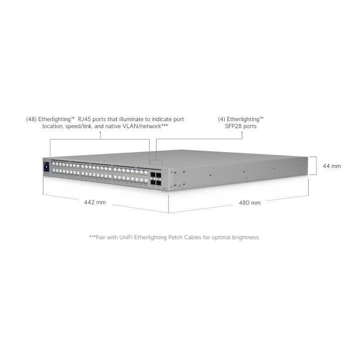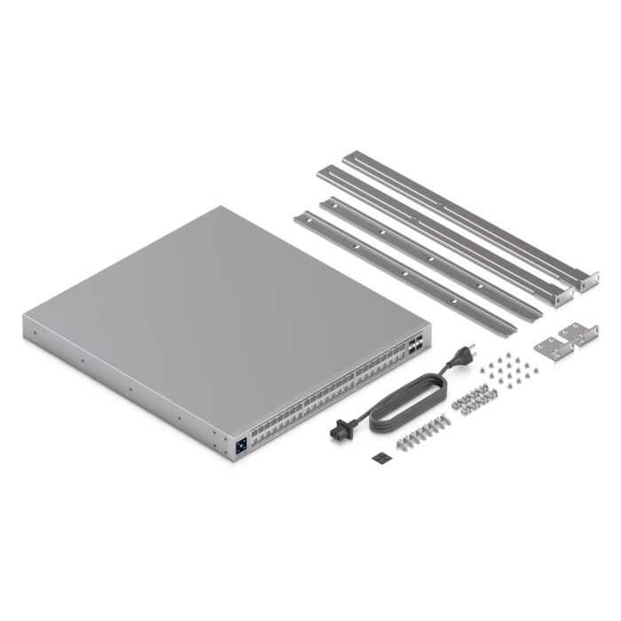 Ubiquiti UniFi Switch Pro XG 48 PoE, is a high-performance, compact, and manageable Layer 3 switch. It is equipped with 48 10G/2.5G RJ45 PoE+++ ports and 4 25G SFP28 uplink ports. With a total PoE budget of 1080W, it can power devices with high power requirements. Etherlighting™ technology visually displays port statuses. Its fan-equipped design provides high-performance cooling. With a rack-mountable (1U) form factor, it is suitable for data centers and large network infrastructures.